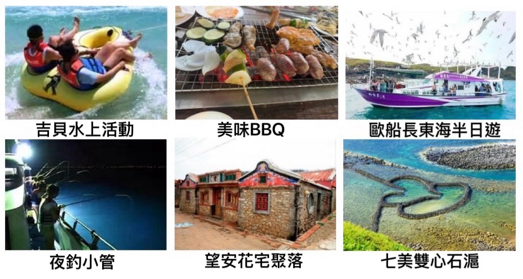 - 南海二島來回船資及七美、望安島機車2人1部,逢單補差額每島100元。